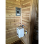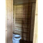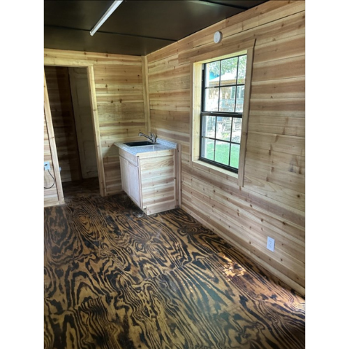 Transforme su espacio con esta casa contenedor de 20′ x 8′, con elegantes paredes de cedro y aislamiento en spray que mantienen la temperatura y confort. Dispone de 1 dormitorio y un baño de 4′ con lavabo (el inodoro necesita reemplazo), ofreciendo 160 pies² de área habitable.