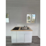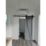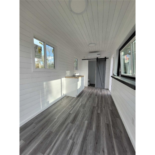 Casa sobre ruedas de 20′: Contenedor premium con remolque de cuello de cisne, mini split, baño con inodoro de compostaje, ducha, cocina eléctrica, salón de planta abierta, puertas francesas y suelo gris. Superficie de 140 pies², lista para una vida mínima y móvil.