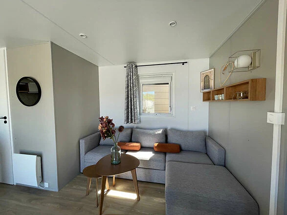 La Mobil Home Louisiana Ponant de 40 m² ofrece un espacio residencial de alta gama diseñado para las cuatro estaciones del año. Su distribución optimiza cada rincón, con un salón amplio y acogedor, una cocina con acceso directo a la terraza, y 3 dormitorios que garantizan comodidad y privacidad para toda la familia.