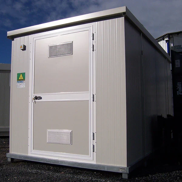 El bungalow fitosanitario está equipado con un interruptor, un neón LED o una lámpara de techo LED (según el tamaño), un convector de 1000 vatios, una toma de corriente, un cuadro eléctrico con interruptores diferenciales (máximo 6 kW) y una caja de conexiones externa.
