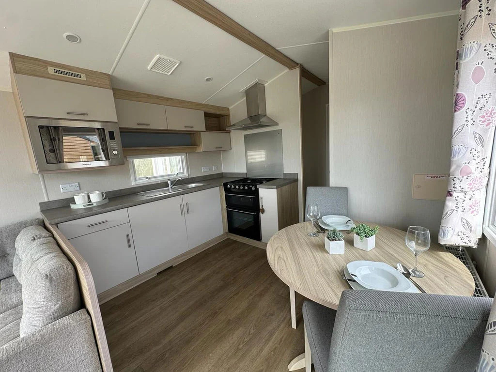 Si busca una casa móvil que combine encanto inglés y máximo confort, la Willerby Linwood C1568 es la elección ideal. Con ventanas y puertas de PVC de doble cristal, garantiza aislamiento y calidez en todas las estaciones. El tejado inclinado de tejas metálicas aporta durabilidad y un diseño elegante.